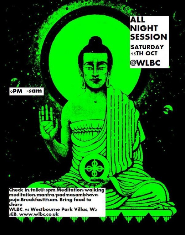 By lokabandhu on Sun, 8 Apr, 2012 - 06:21Buddhism’s all about accepting what is, not fighting, becoming calm and peaceful - right? Maybe - maybe not… Over at Triratna’s West London Buddhist Centre they’ve been running all-night meditations for a while now, backed up by some great posters and publicity we’re delighted to reproduce below…